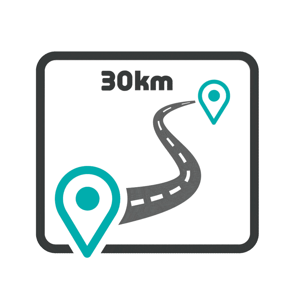 ≥ 15km (旅行型) / ≥ 30km (高容量型)