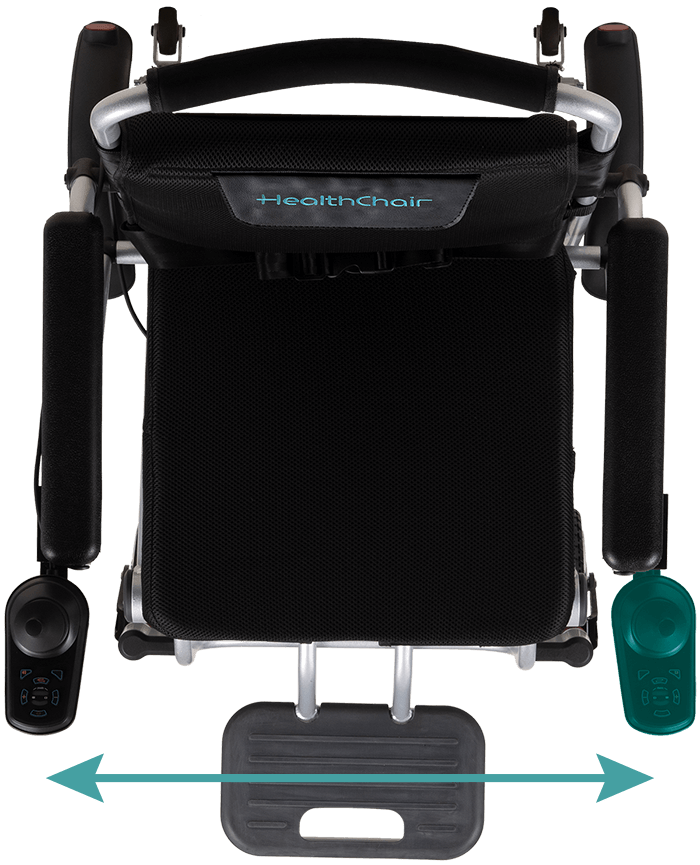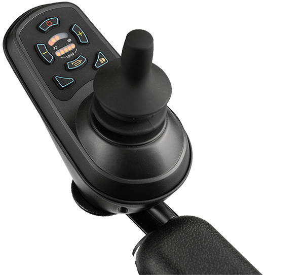 電動時控制器可自由配置於車身左/右方,方便不同慣用手;亦可輕鬆切換至手動模式,便於護理人員推動。
