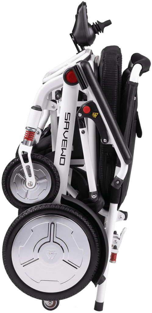 採用鋁合金車架,連電池總重僅為19kg,為傳統電動輪椅一半重量,安全負重達100kg。